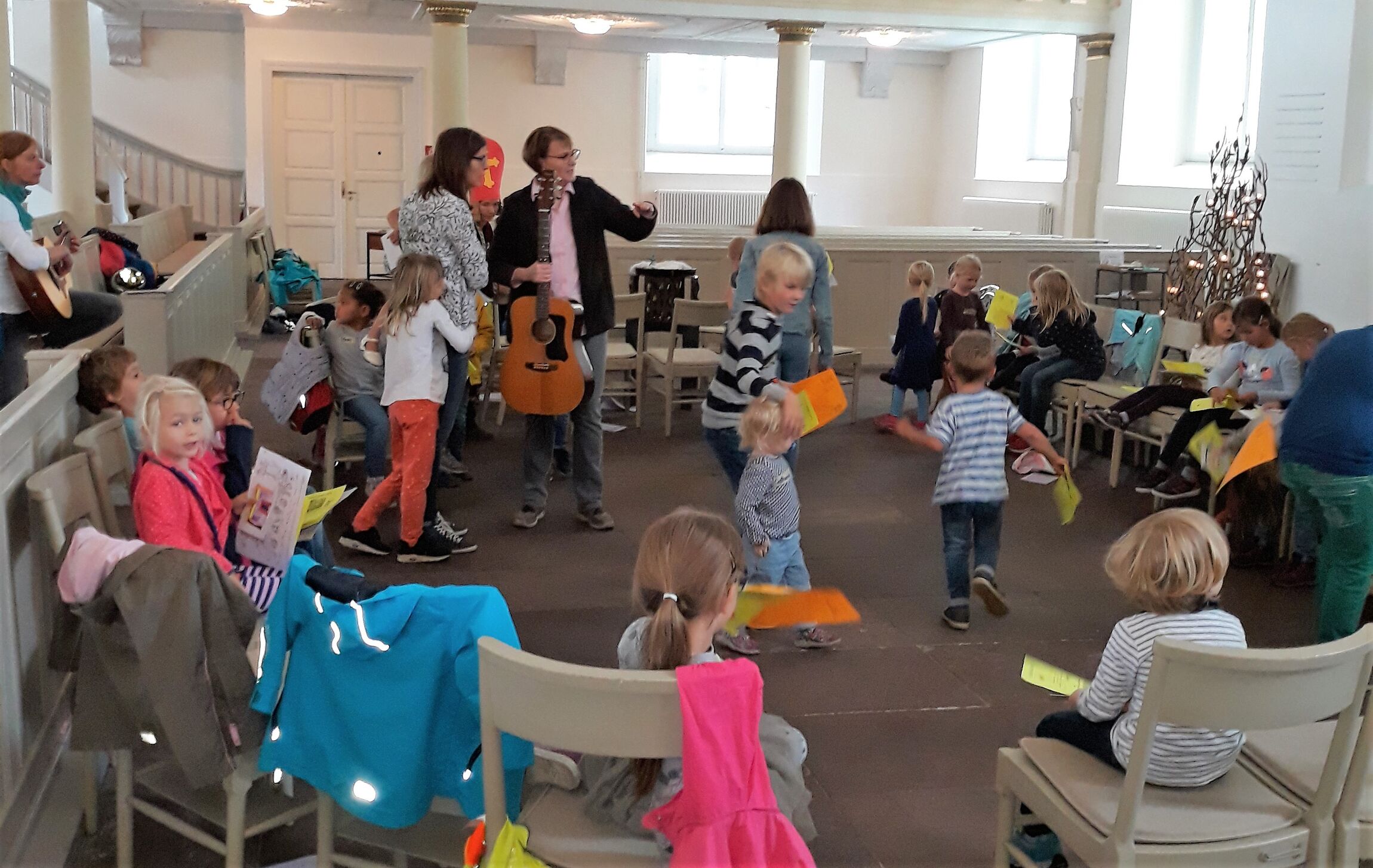 Knapp 40 Kinder waren der Einladung des Teams unter Leitung von Franziska Fenderl und Pastorin Angelika Scheepker gefolgt. Sie erlebten einen entdeckungsreichen Vormittag. An mehreren Stationen konnten die Kinder die Lambertikirche erkunden: von der Kanzel bis zu Orgel, vom zweiten Taufstein bis zum Dornbuschleuchter gab es überall viel zu sehen, zu malen, zu basteln, zu suchen, zu hören und zu singen. Sogar Bischof Lambert, nach dem die Lambertikirche ihren Namen hat, folgte der Einladung und erzählte aus seinem Leben im frühen Mittelalter. Eine Schatzsuche und ein gemeinsam neu erlerntes Lied beendete die Entdeckungstour durch Lamberti.